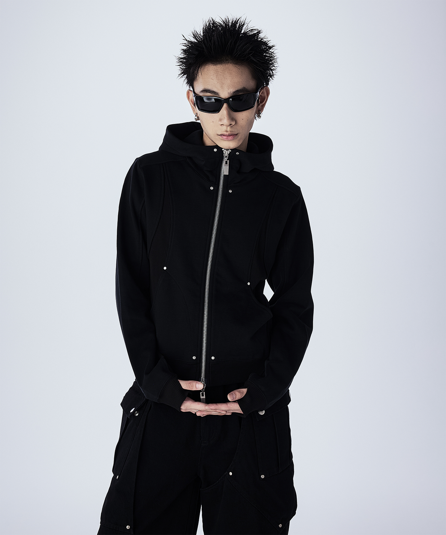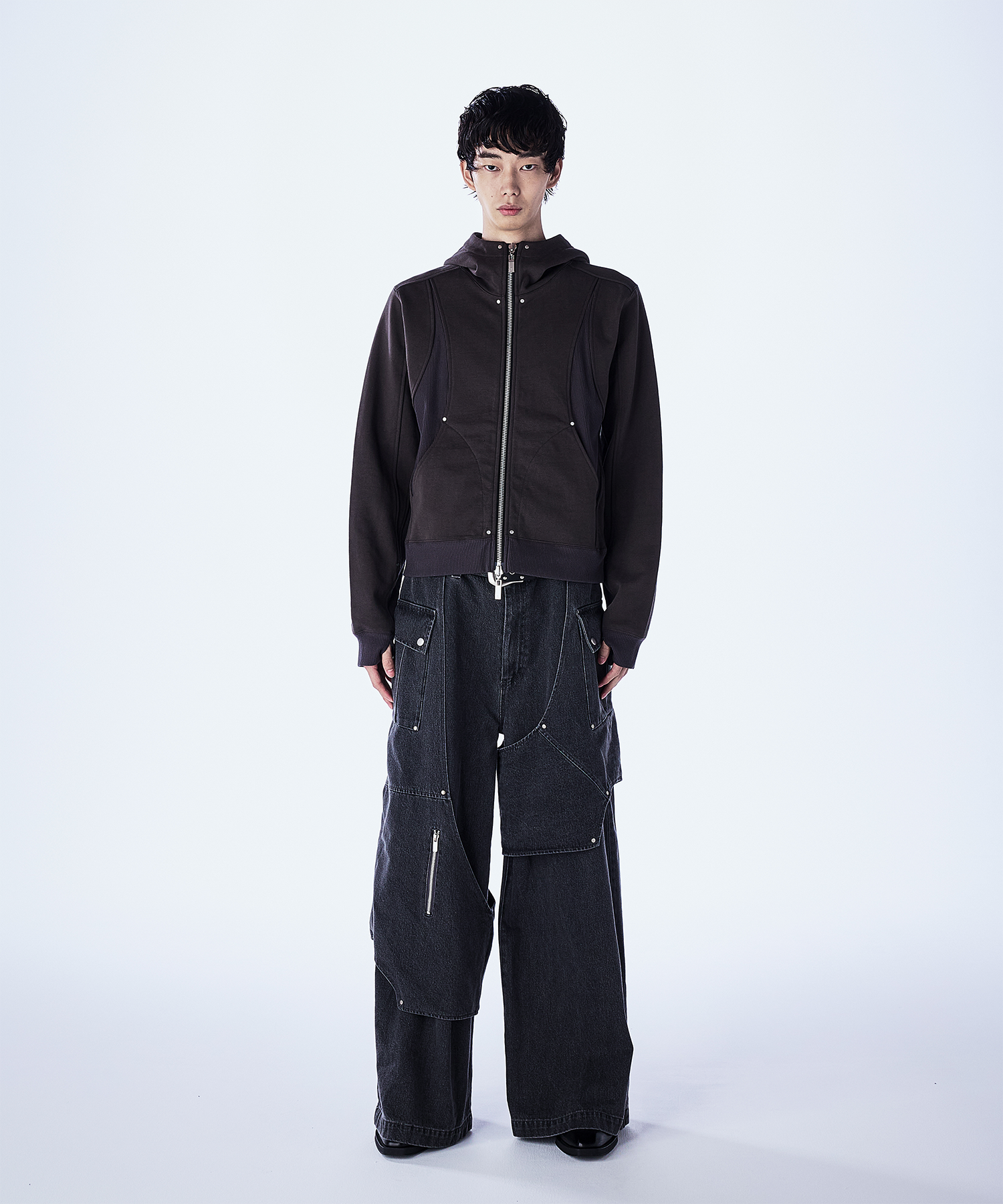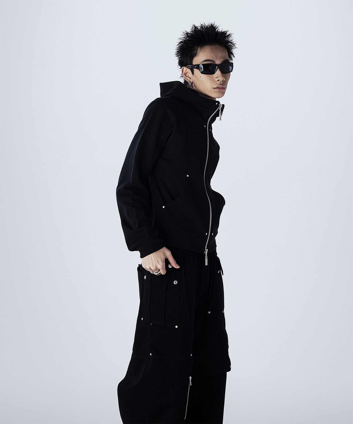 首元が高めのダブルジップ仕様で、シルエットをすっきり見せつつモードな印象に。 JLオリジナルの大ぶりなスライダーがさりげないアクセントとなり、フードは大きめでダブル仕様になっており、立体感のあるデザインとなっております。 一枚で主役になるデザインなので、シンプルなボトムスと合わせるだけでコーデが決まるアイテムで