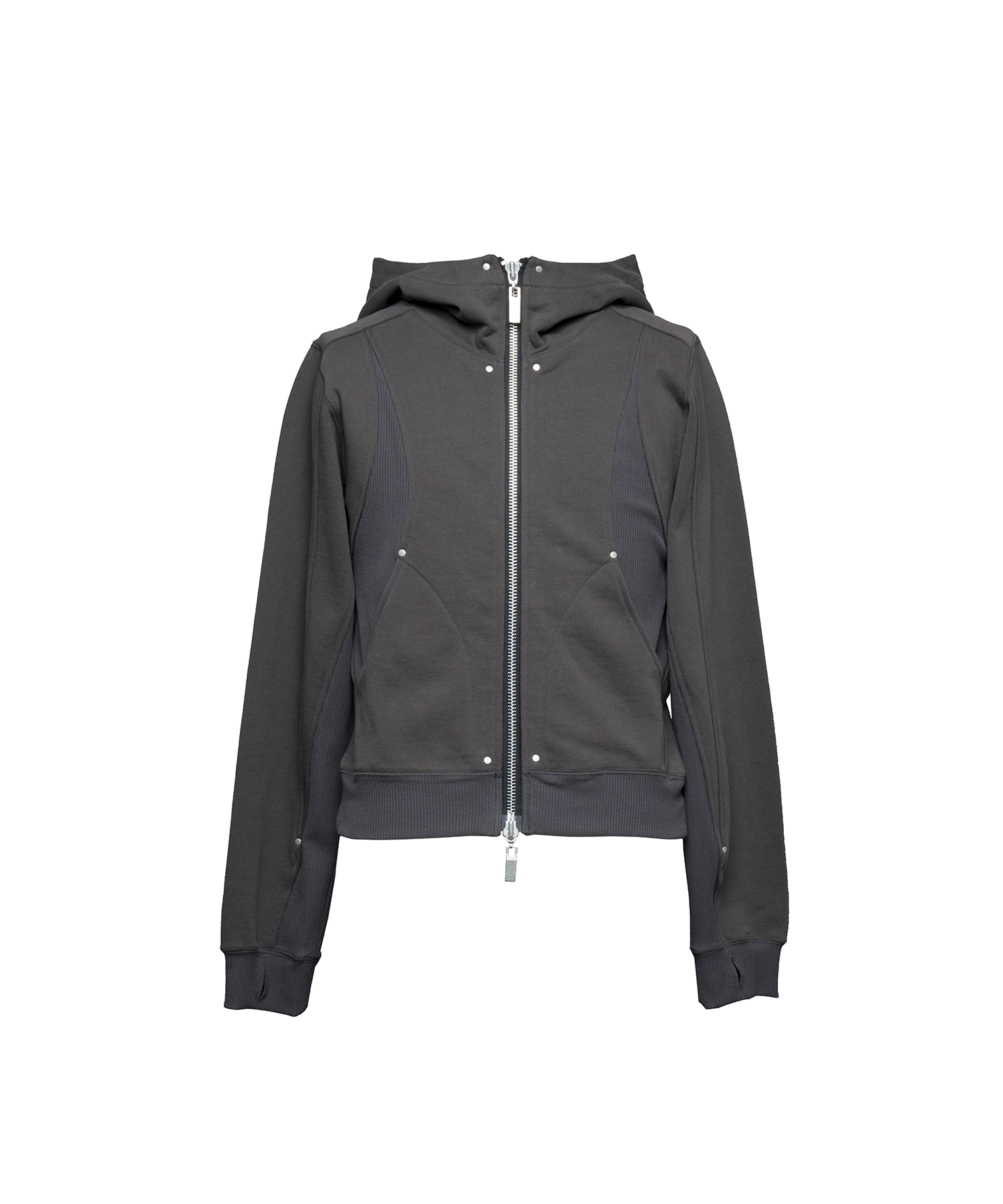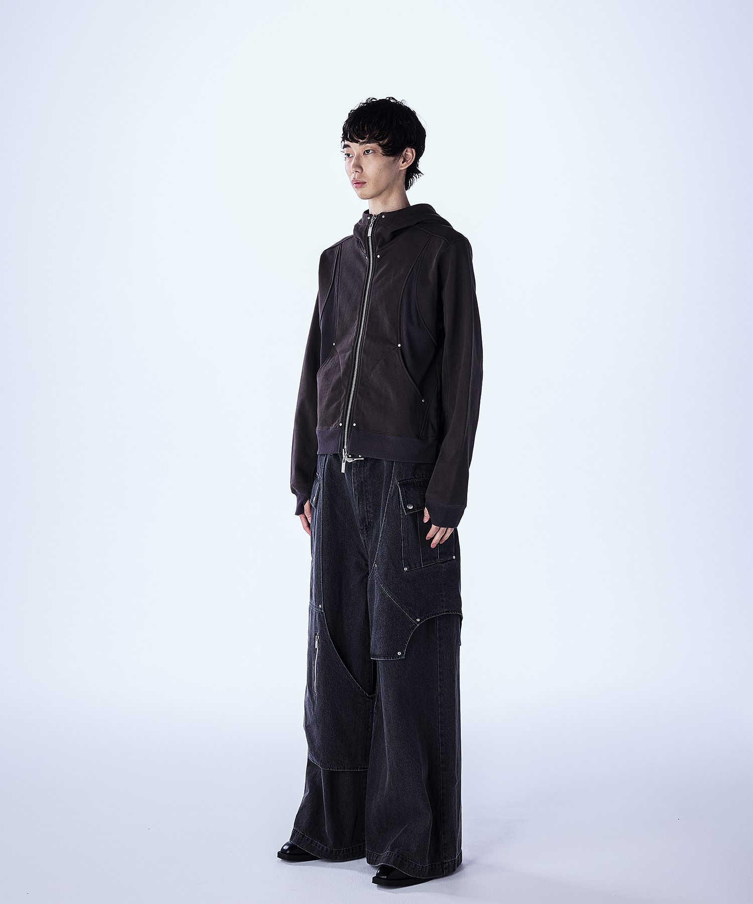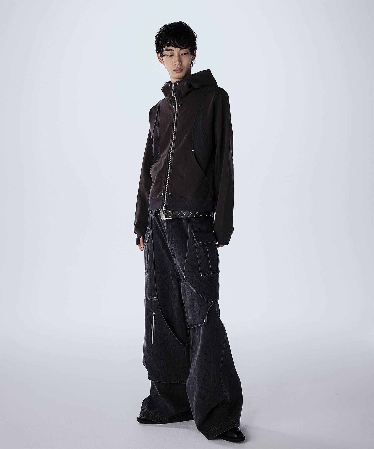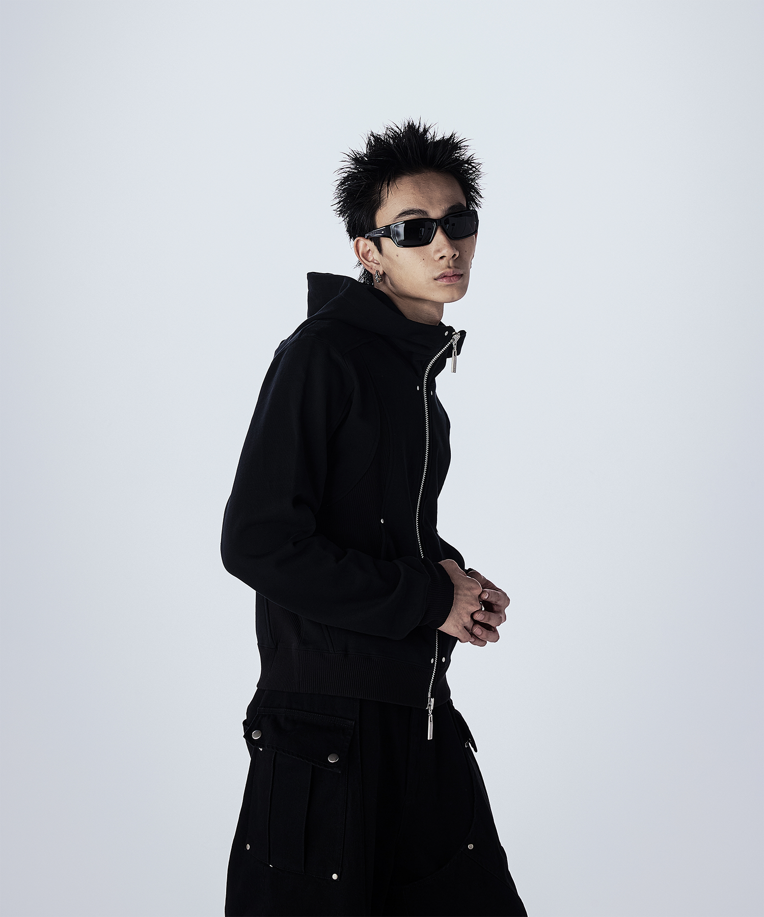 首元が高めのダブルジップ仕様で、シルエットをすっきり見せつつモードな印象に。 JLオリジナルの大ぶりなスライダーがさりげないアクセントとなり、フードは大きめでダブル仕様になっており、立体感のあるデザインとなっております。 一枚で主役になるデザインなので、シンプルなボトムスと合わせるだけでコーデが決まるアイテムで